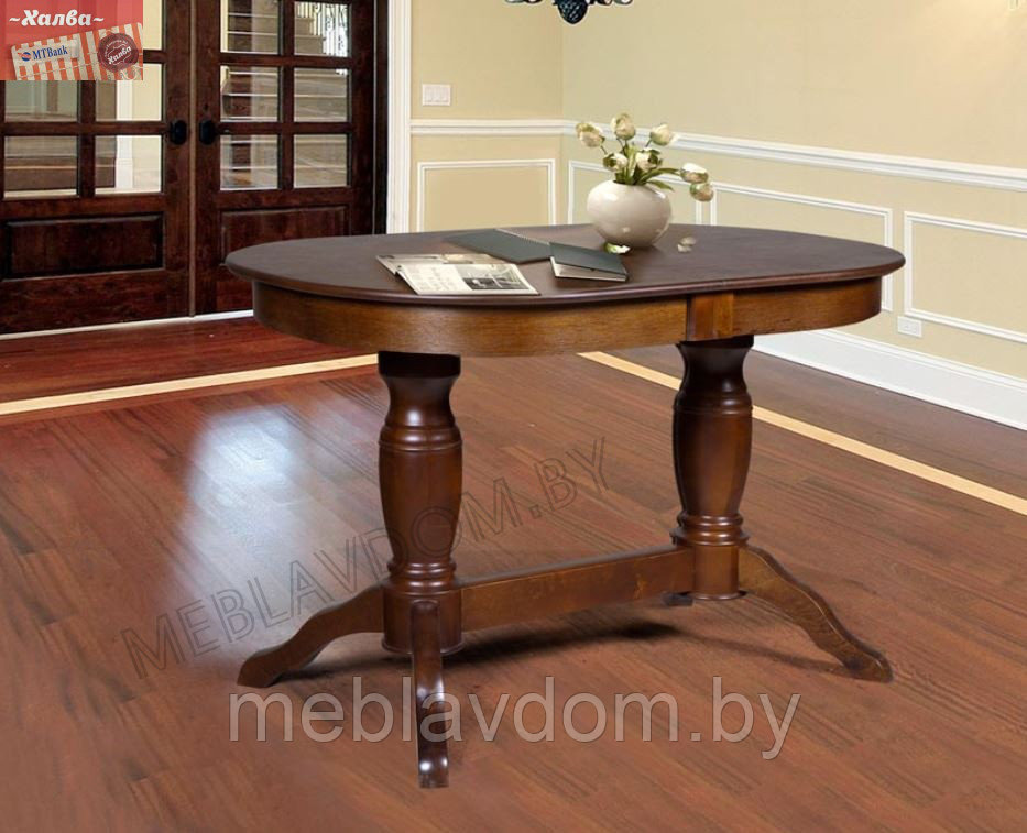 Обеденный раскладной стол Пан на двух ногах станет украшением столовой.