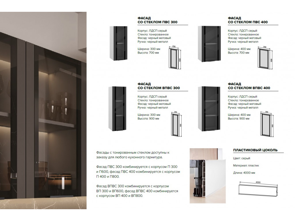Стекло в фасаде: Прозрачное, 4 мм.