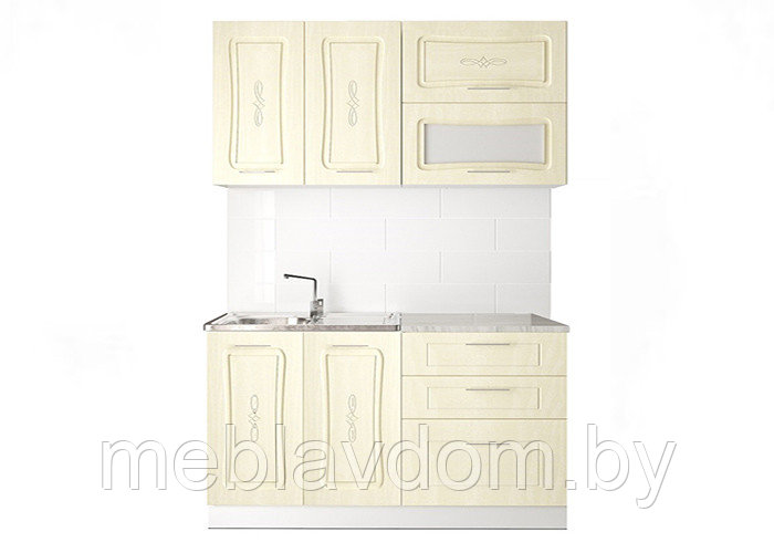 Фасад кухни Адель изготавливается из МДФ, корпус из ДСП. Кухня кромкуется ПВХ пленкой. Сушка для посуды в комплекте. Кухню можно доукомплектовать столешницей на мойку.