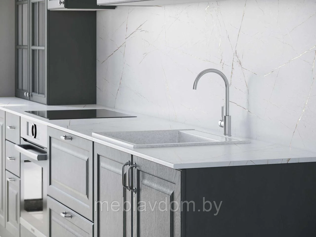 Скиналь идеально подходит под цвет столешницы, стык между ними закрывается уплотнительным плинтусом, что украшает изделие и повышает его эксплуатационные характеристики. |