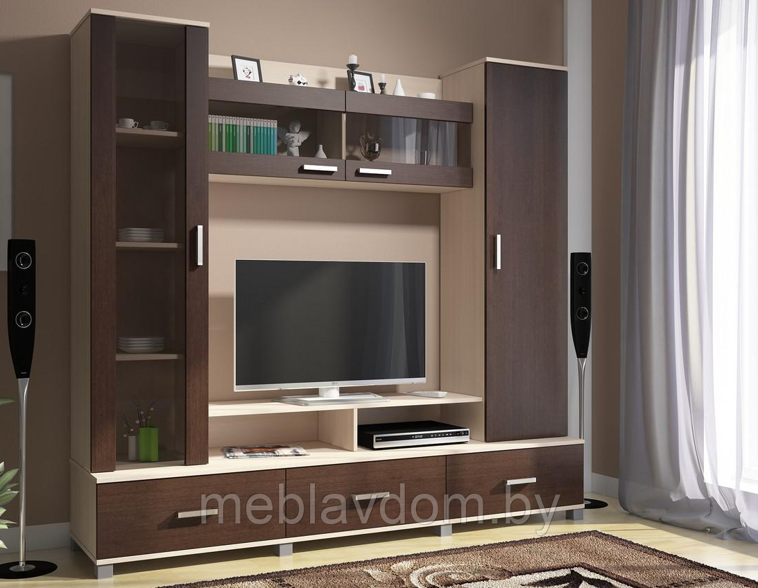 Цветовое исполнение гостиной: Дуб молочный/Венге.